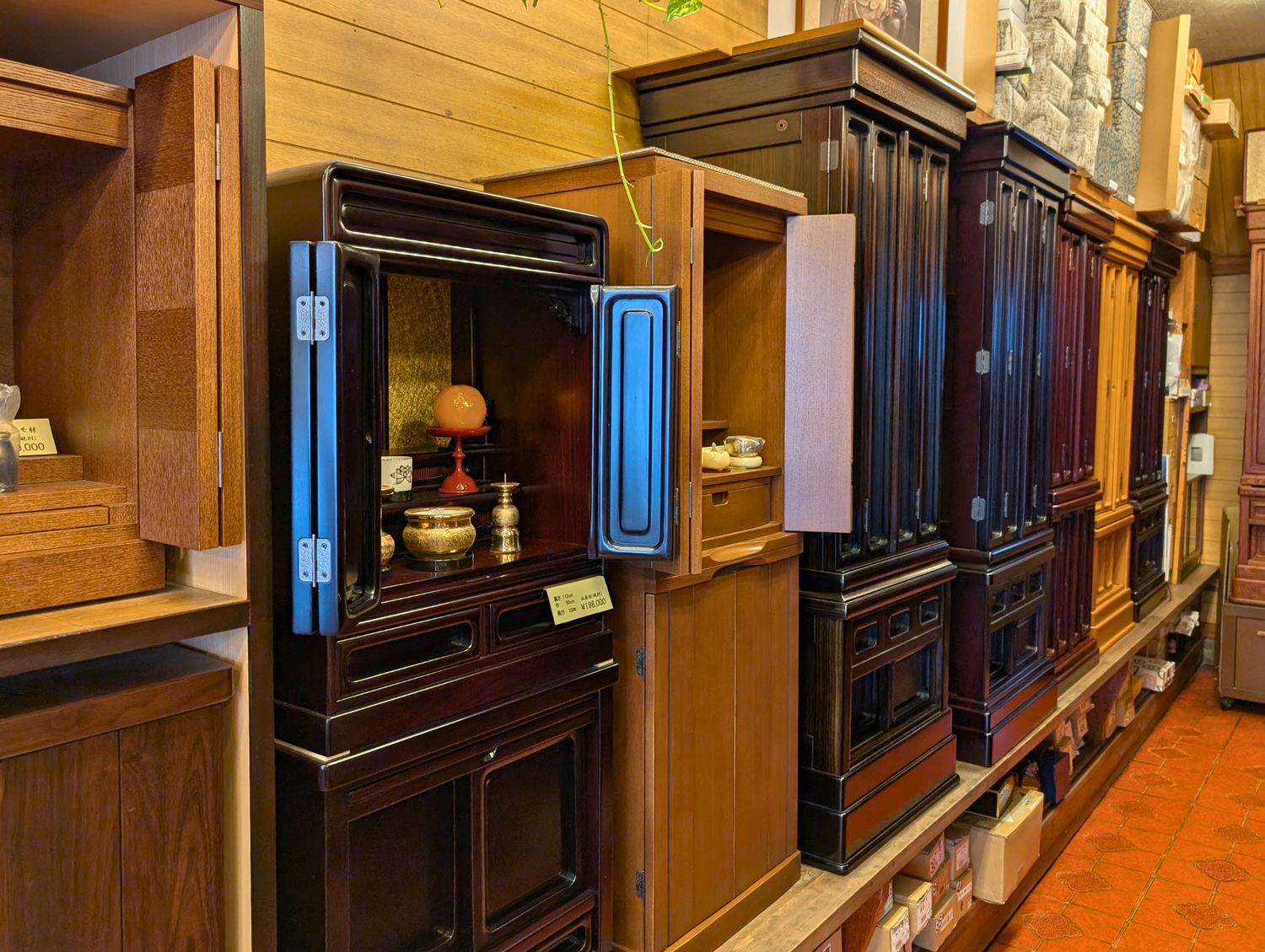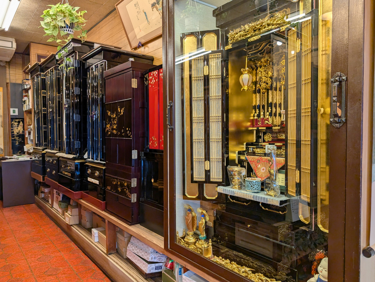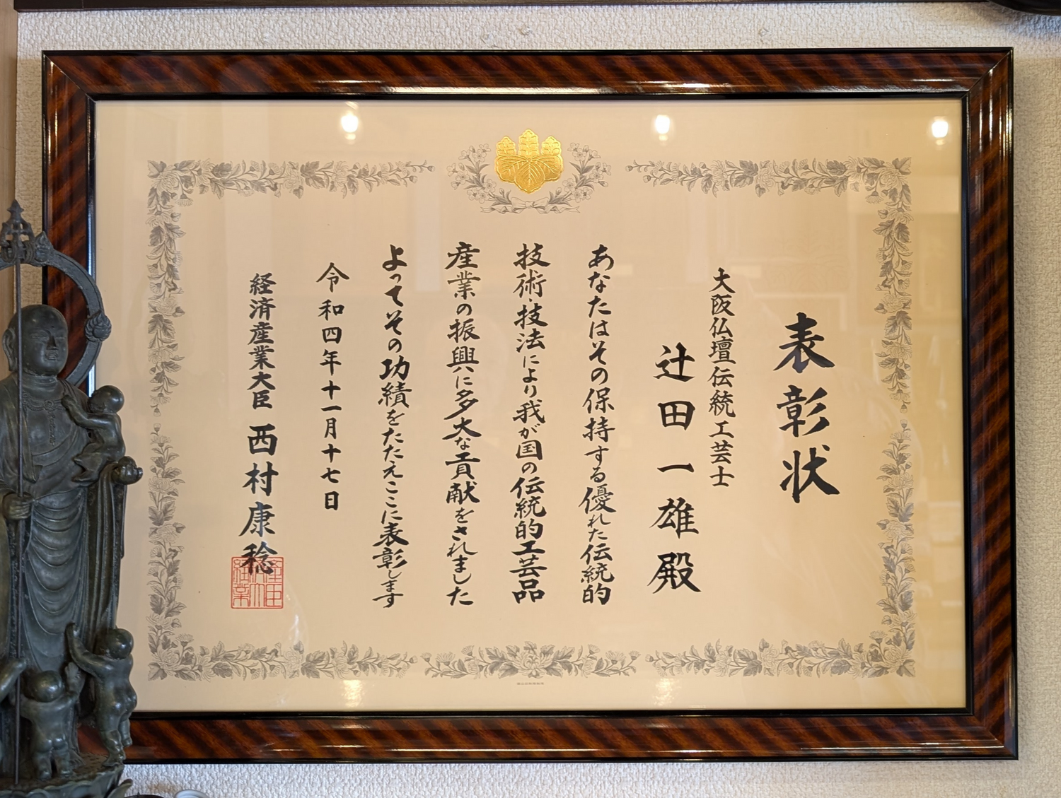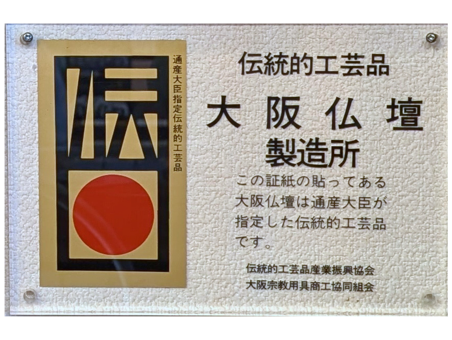 光明堂辻田佛壇店は、経済産業大臣より伝統的工芸品に指定されでいる「大阪仏壇」を製造販売しています。